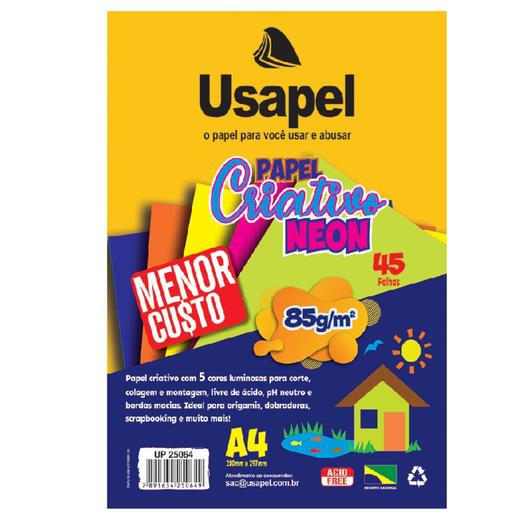 Feito com papel 100% reciclado com formulação especial para que as folhas sejam muito macias e não causem acidentes durante a operação de corte e colagem.